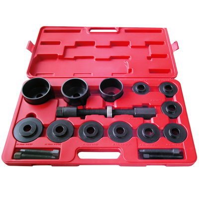 * Up-to-date kit for the installation and removal of front hub bearings without the need to dismantle the steering knuckle and strut assembly. Fast and simple to use. Suitable for most front wheel drive cars. Heavy-duty steel drifts with black phosphate finish for corrosion resistance. May be used with impact wrench. Supplied in carry case.